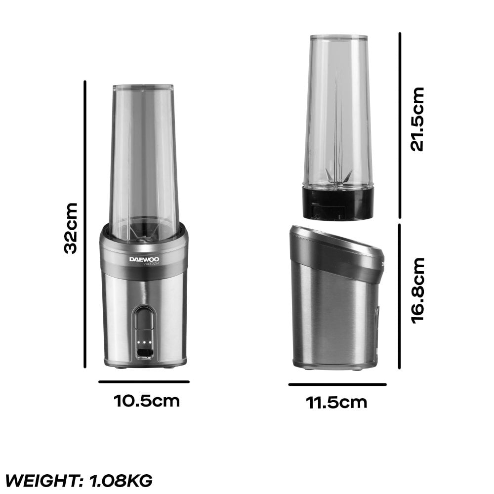 The Daewoo SDA2634GE 200W cordless pro bullet blender is a convenient and portable blender. With a 200W motor, durable stainless steel blades, and a 750ml blending cup, it's ideal for making drinks at home or on the go. Its cordless design and rechargeable battery provide added flexibility.