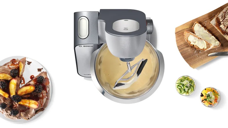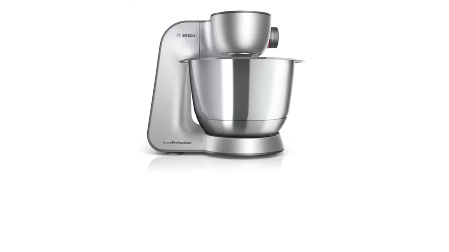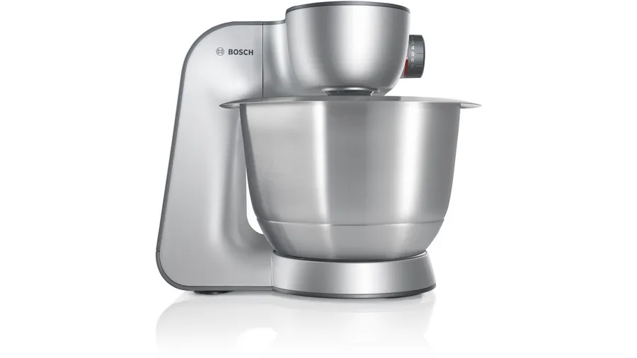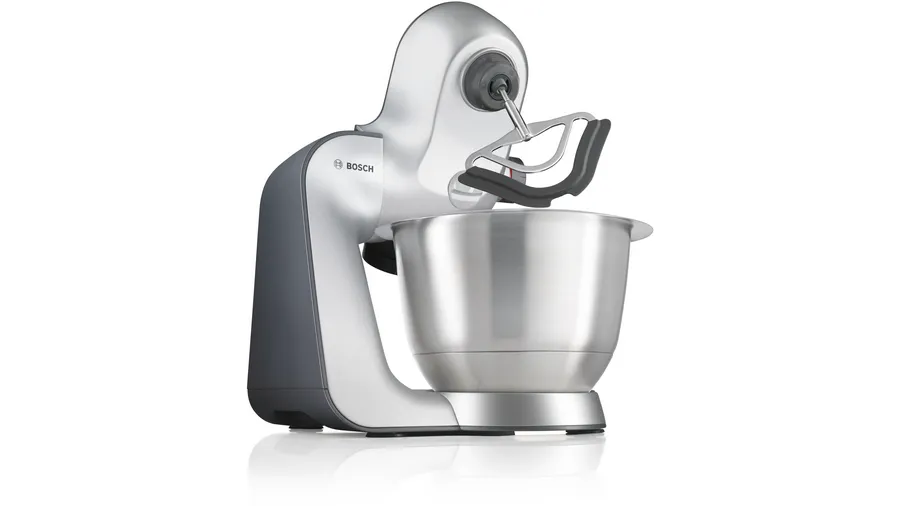 Prepare a wide range of foods easily with the MUM59340GB stand mixer from Bosch. Featuring a powerful 1000W motor, you can breeze through even the heaviest dough and large amounts of blending. 3D Planetary Mixing brings all the ingredients together and creates the perfect mix, with nothing left behind. With seven speed settings, no job is too big or too small. Plus, this silver model comes with a high quality whisk, stirrer, and kneading hook for perfect baking results every time.