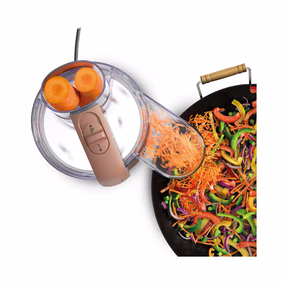 With a 1.3L bowl, reversible slicing and grating disc, and chopping blade, this appliance supports a wide range of meal preparation tasks, from simple snacks to more complex dishes.