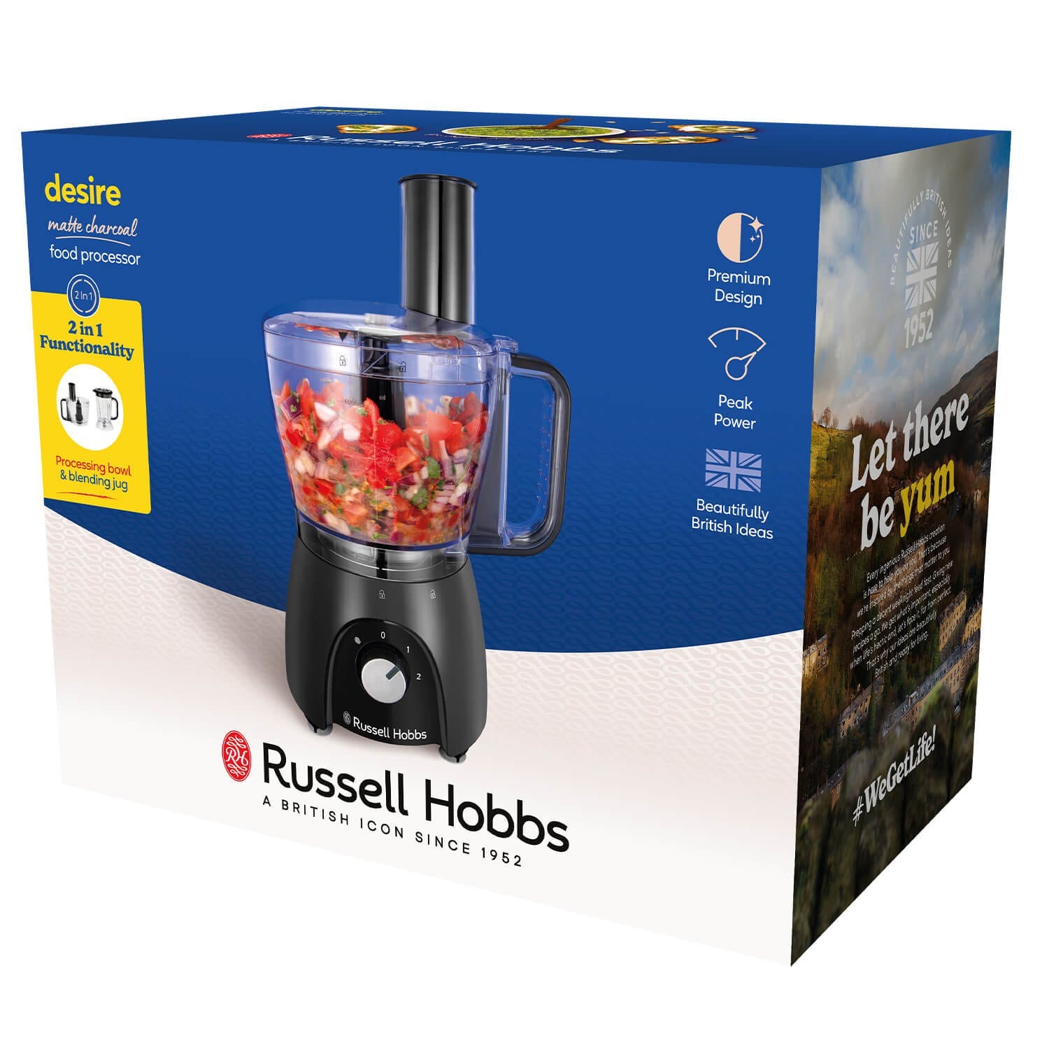 Russell Hobbs' 27111 Desire food processor is an essential kitchen appliance, combining style, power, and versatility. It's perfect for those tiresome food preparation tasks. Finished in tasteful matte charcoal and equipped with a powerful 600W (900W peak power) motor, this food processor is designed to simplify cooking tasks, allowing you to focus on enjoying your meals.