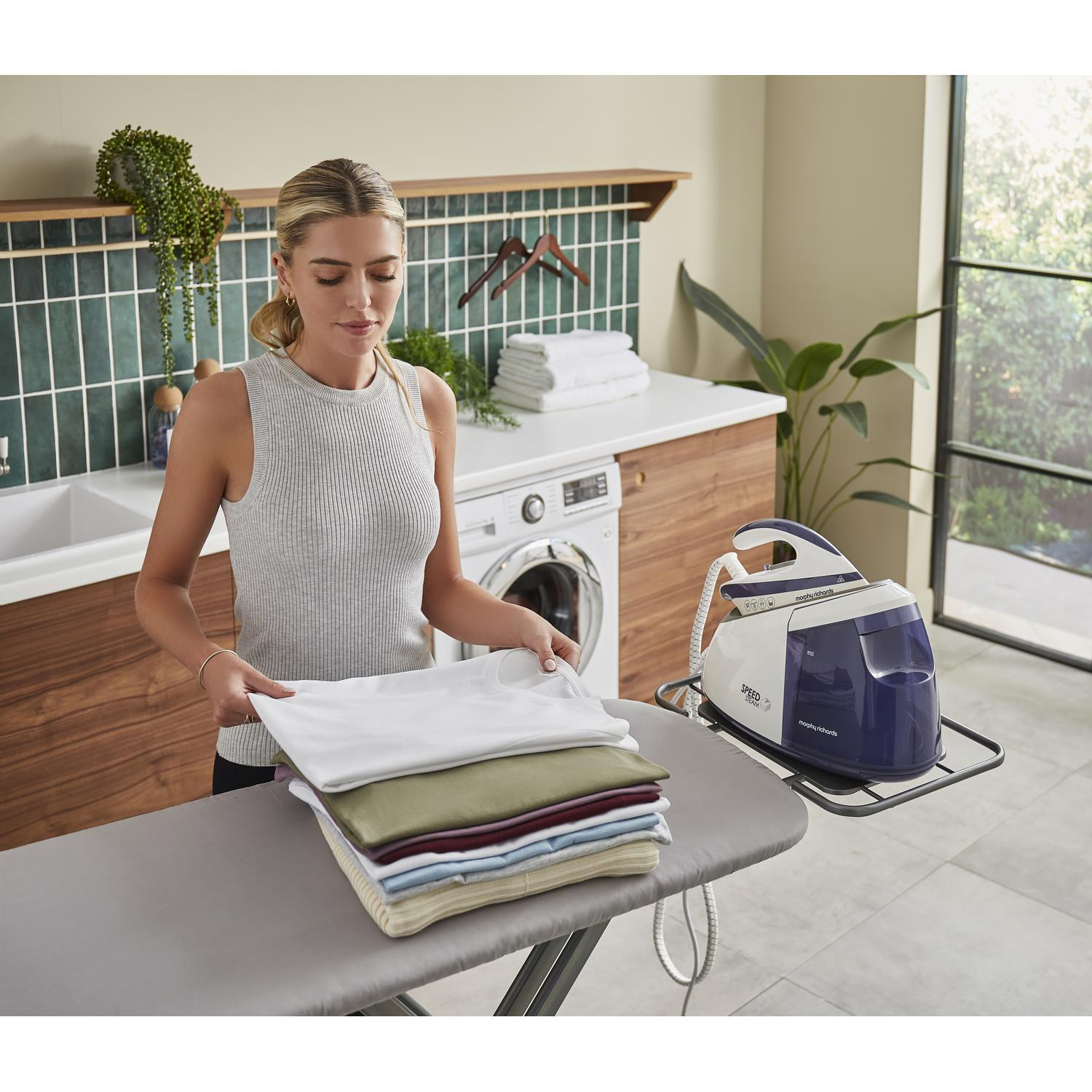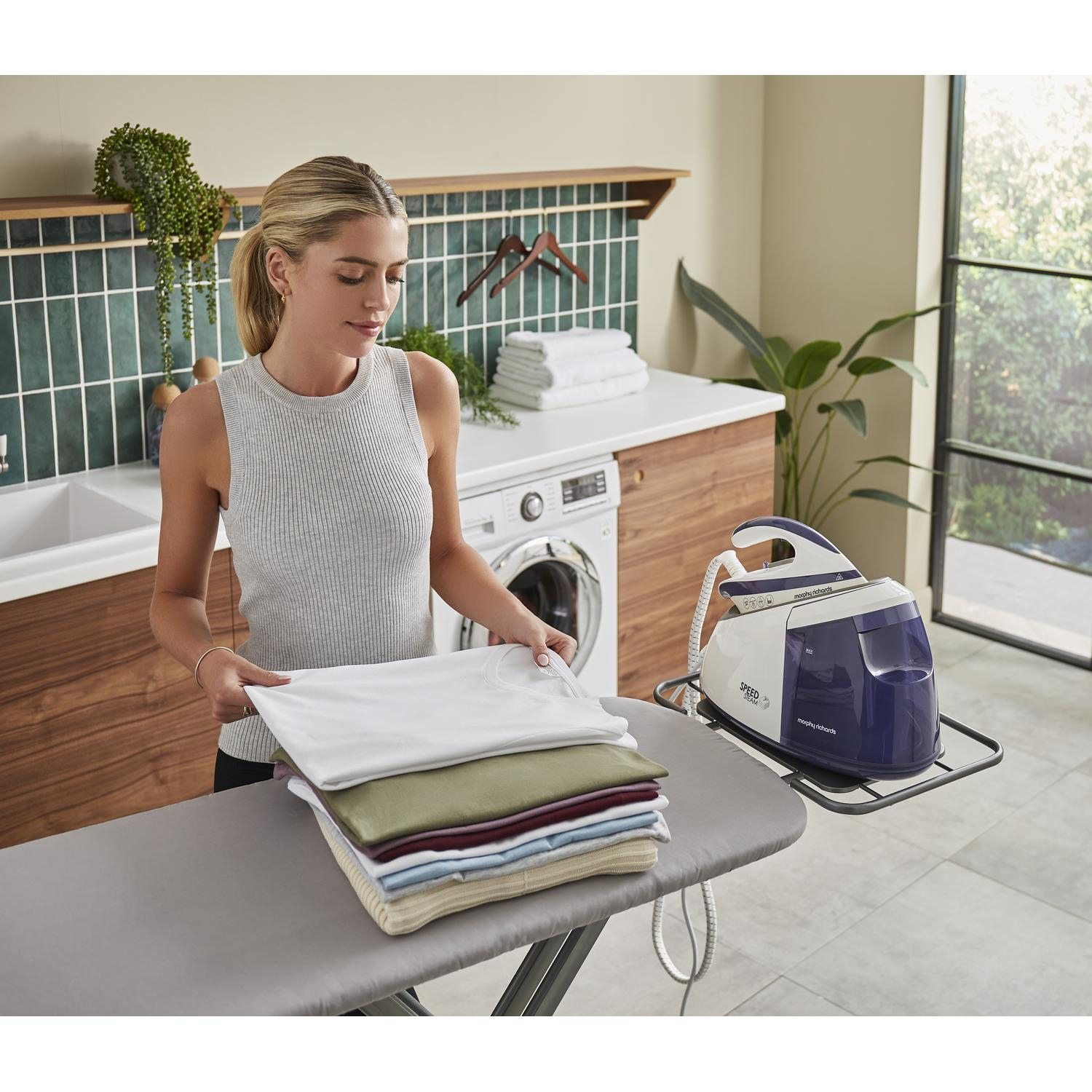 The Morphy Richards 333202 speed steam generator iron is designed to make ironing faster and more efficient, especially for larger households. With its powerful 3000W performance and high-pressure steam output, this iron delivers professional quality results with minimal effort. Whether you’re working through a week’s worth of shirts or refreshing curtains, this iron is built to handle it all with ease.