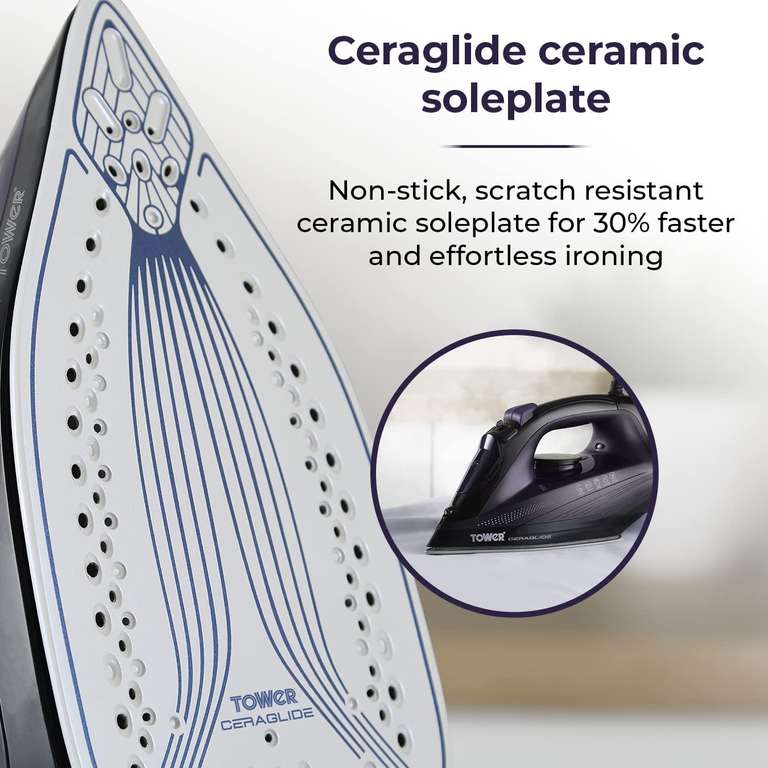 With a 2600W performance that can be adjusted to varying temperatures for different fabrics, the soleplate delivers CeraGlide ceramic technology to make quick work of tough creases whilst remaining gentle on your linens.