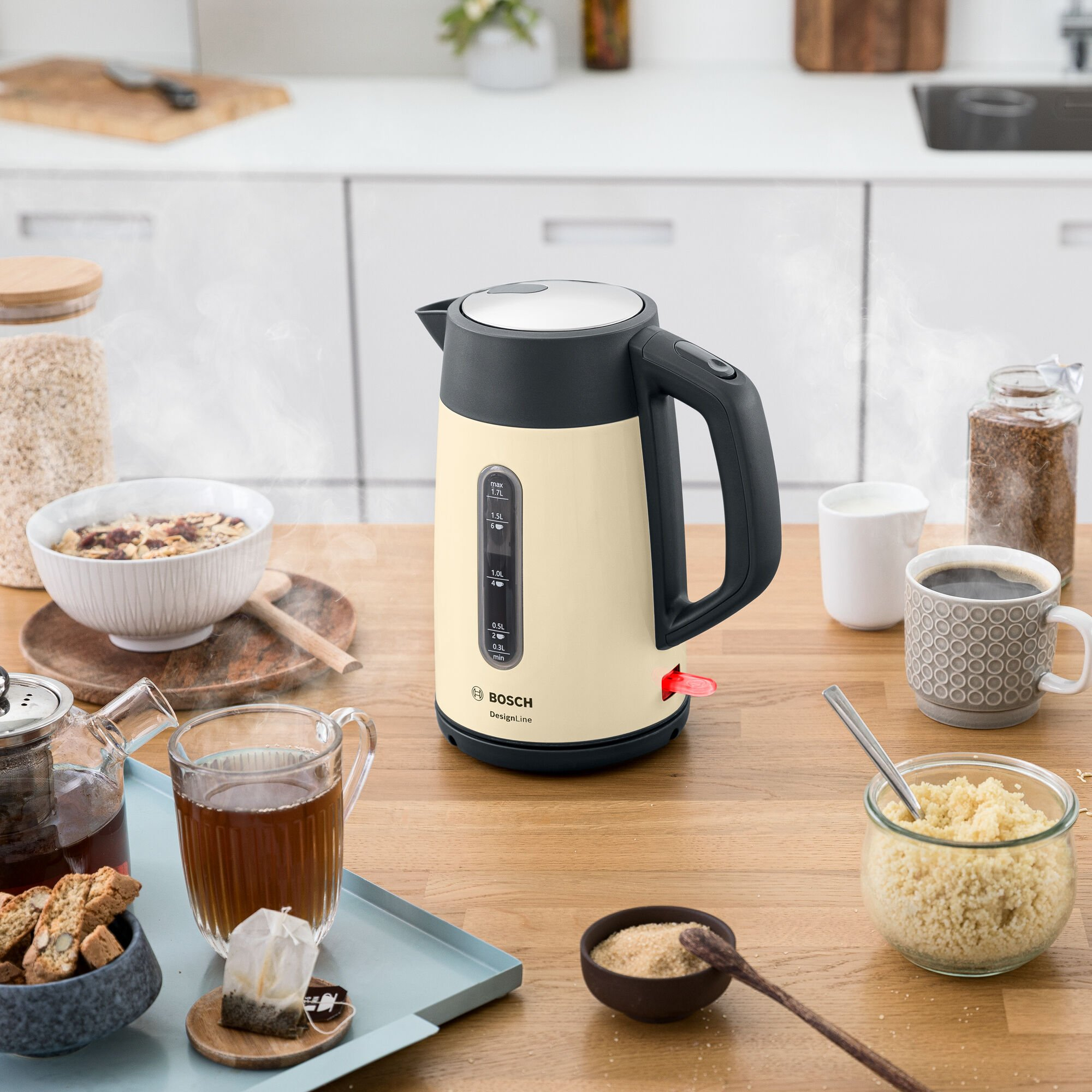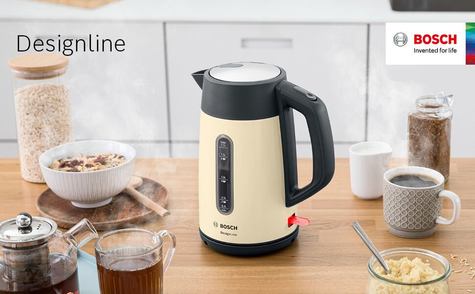 The Bosch TWK4P437GB 1.7L traditional jug kettle is a stylish and practical choice for any kitchen. With fast boil performance, one handed operation and thoughtful safety features, this kettle is built to handle the demands of busy family mornings, while looking great on your countertop.