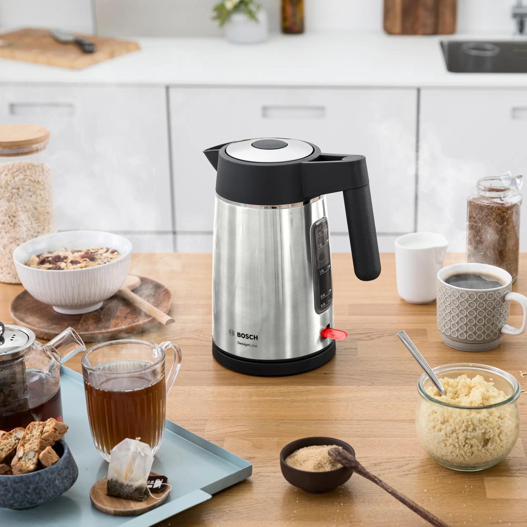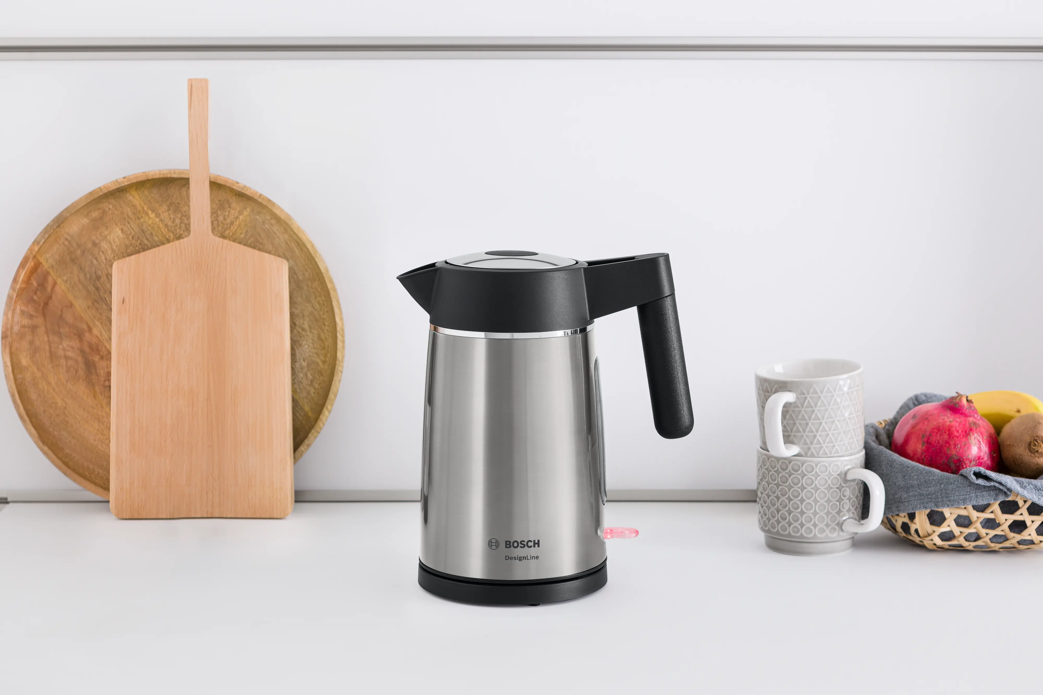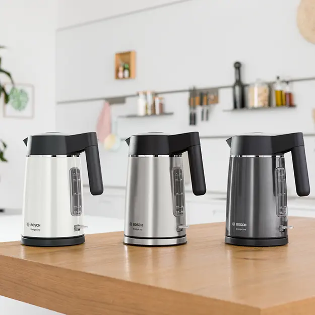 The Bosch TWK5P480GB DesignLine 1.7L Stainless Steel Kettle has a stainless steel finish paired with powerful performance. With a 1.7L capacity and 3000W output, it delivers fast, efficient boiling while maintaining a modern look.