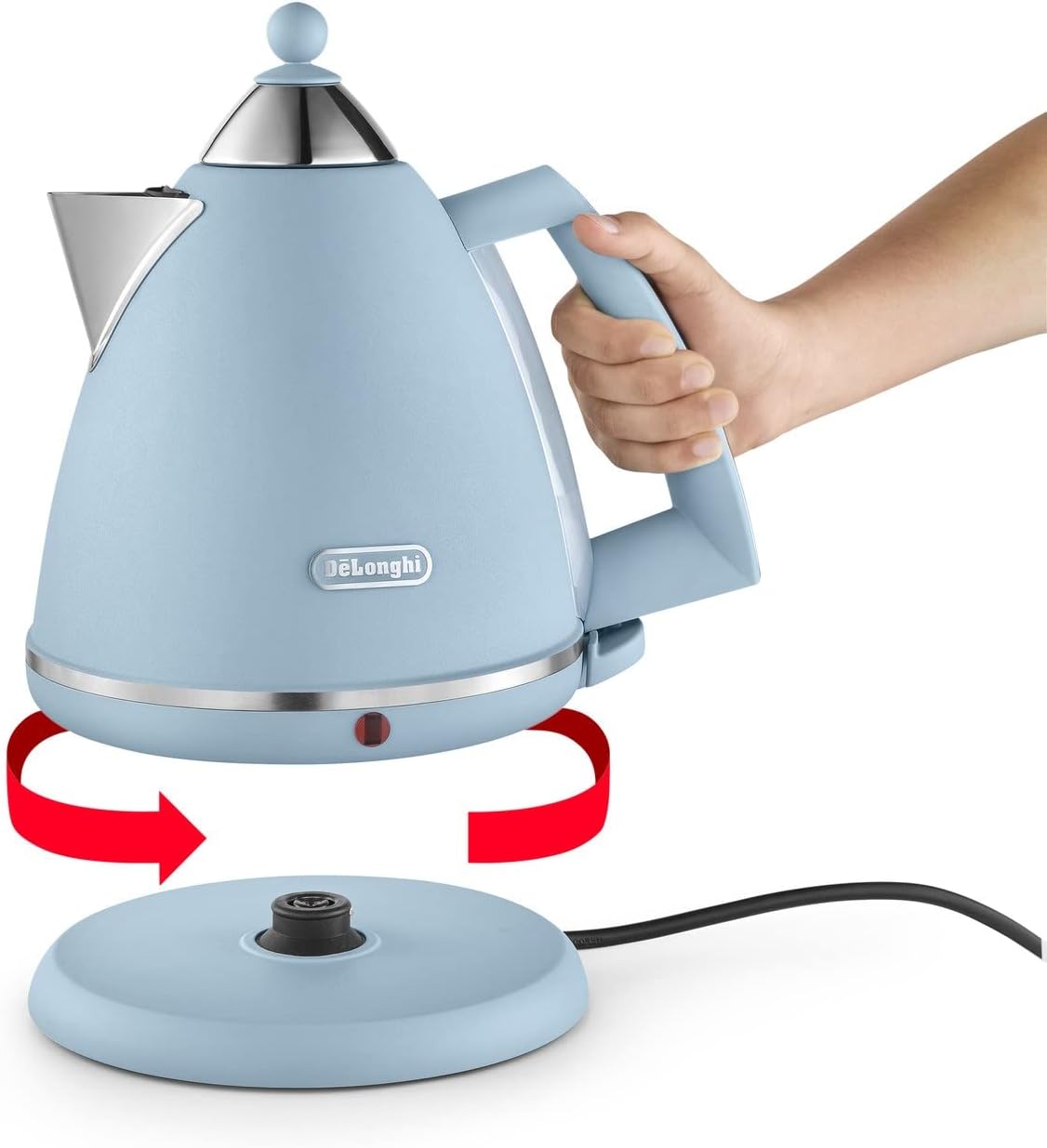 The detachable 360° swivel base allows for easy cordless use and effortless handling from any angle. With integrated power cable storage to keep your countertop neat, the De'Longhi KBX3016.AZ kettle combines beauty and functionality for a seamless everyday experience.
