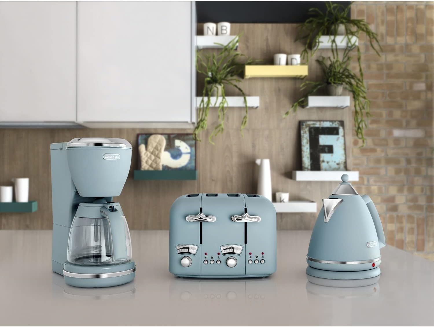 The De'Longhi KBX3016.AZ argento flora blue jug kettle brings retro style and everyday practicality together in one unique appliance. Finished in agave blue with chrome accents, this 1.7L kettle adds a calm yet vibrant touch to your kitchen while delivering reliable performance.