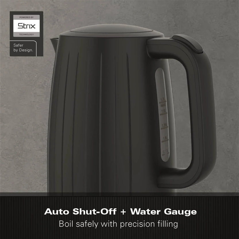 Built for convenience, this kettle heats water quickly and reliably, helping you save time during your daily routine. The stealth black finish gives this kettle a refined, contemporary edge.
