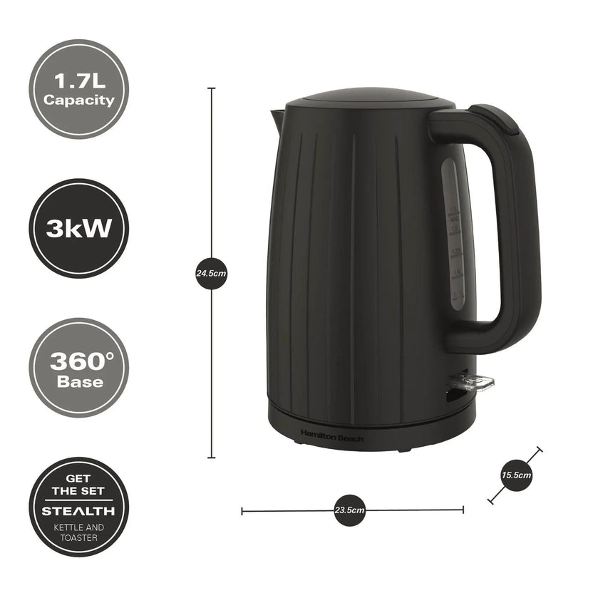 The Hamilton Beach HBK8522B 1.7L Stealth Black Kettle combines a stylish, modern design with dependable performance. With a 1.7L capacity, this kettle is ideal for busy households, making it easy to prepare multiple cups in one go.