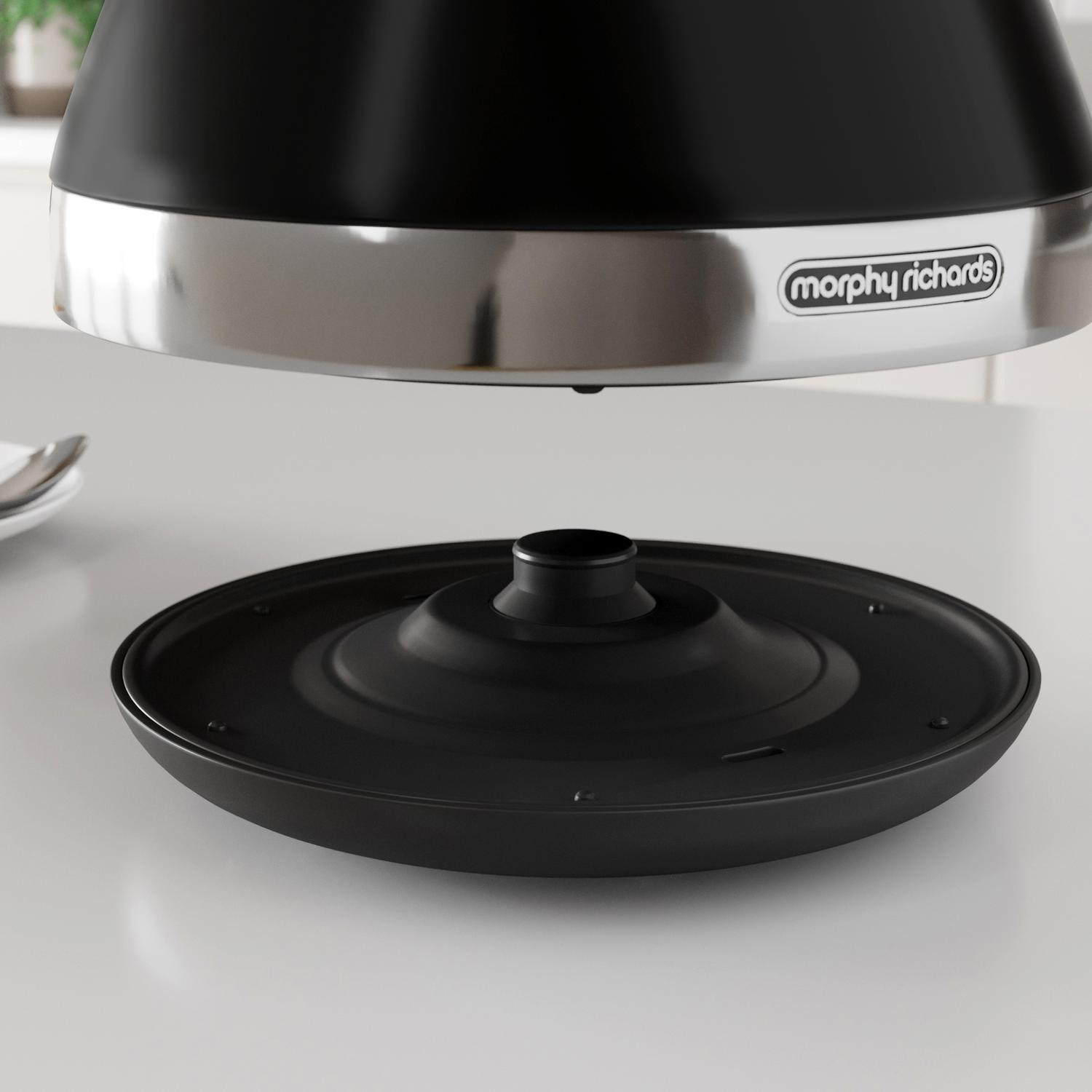 The Morphy Richards 100131 1.5 Litres Venture Pyramid Black Kettle blends timeless design with smart features, making it a standout addition to any kitchen. Its vintage-inspired pyramid shape and sleek black finish bring a touch of elegance, while modern tech ensures your brews are always quick and hassle-free.