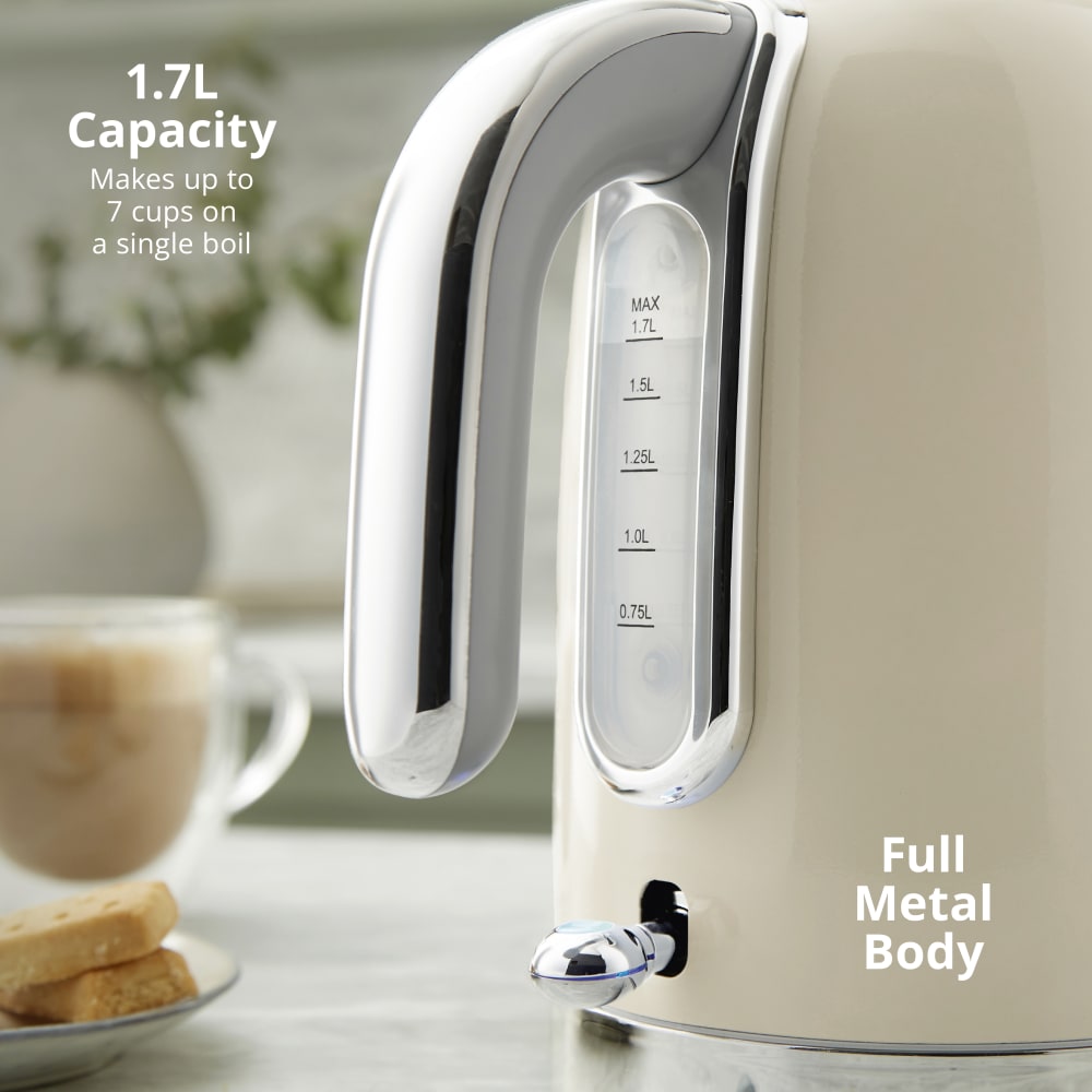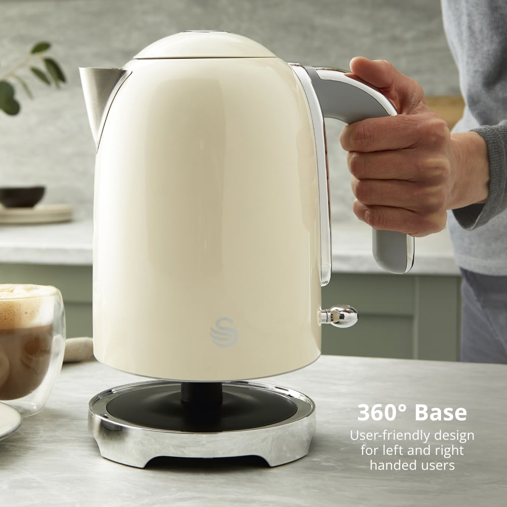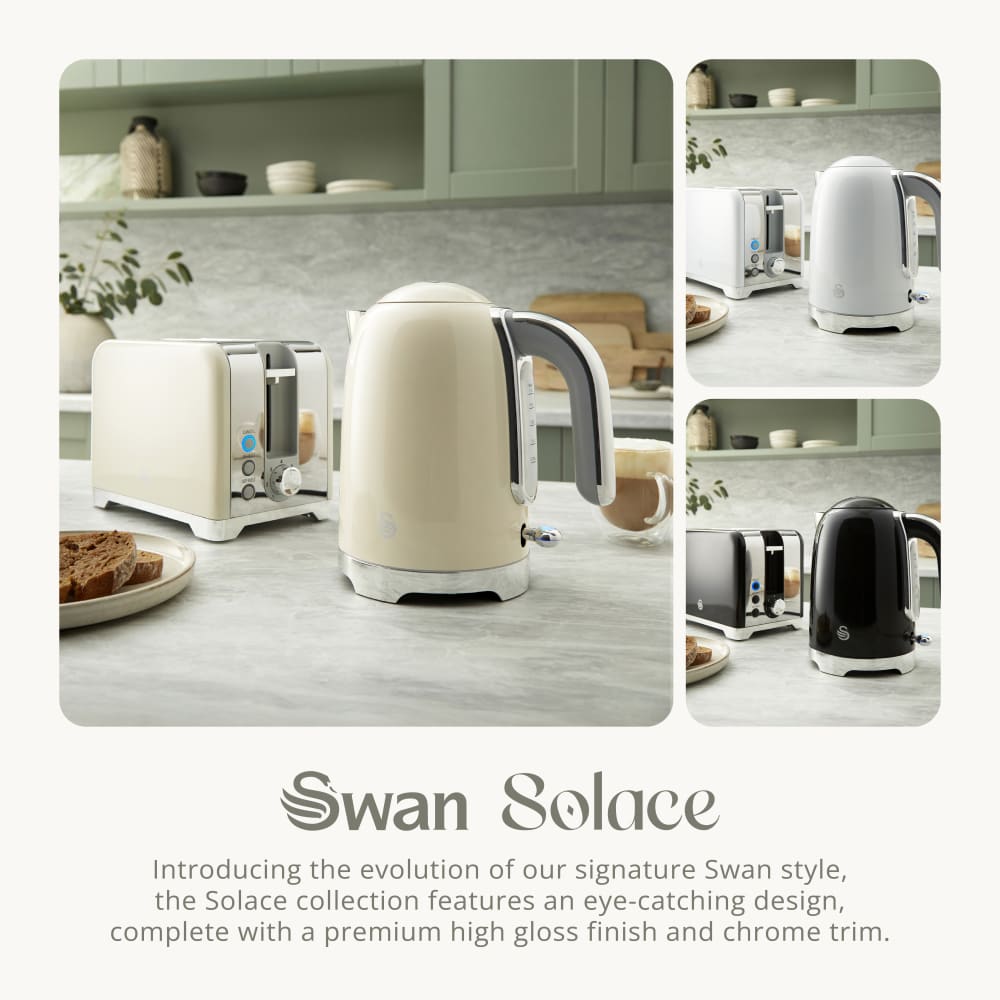 The Swan SK19026CRM Solace 1.7L stainless steel cream jug kettle blends timeless style with modern functionality to elevate your daily brew. Part of the elegant Solace collection, this kettle offers fast boiling, user-friendly features and a sleek high gloss cream finish which is perfect for any kitchen setup.