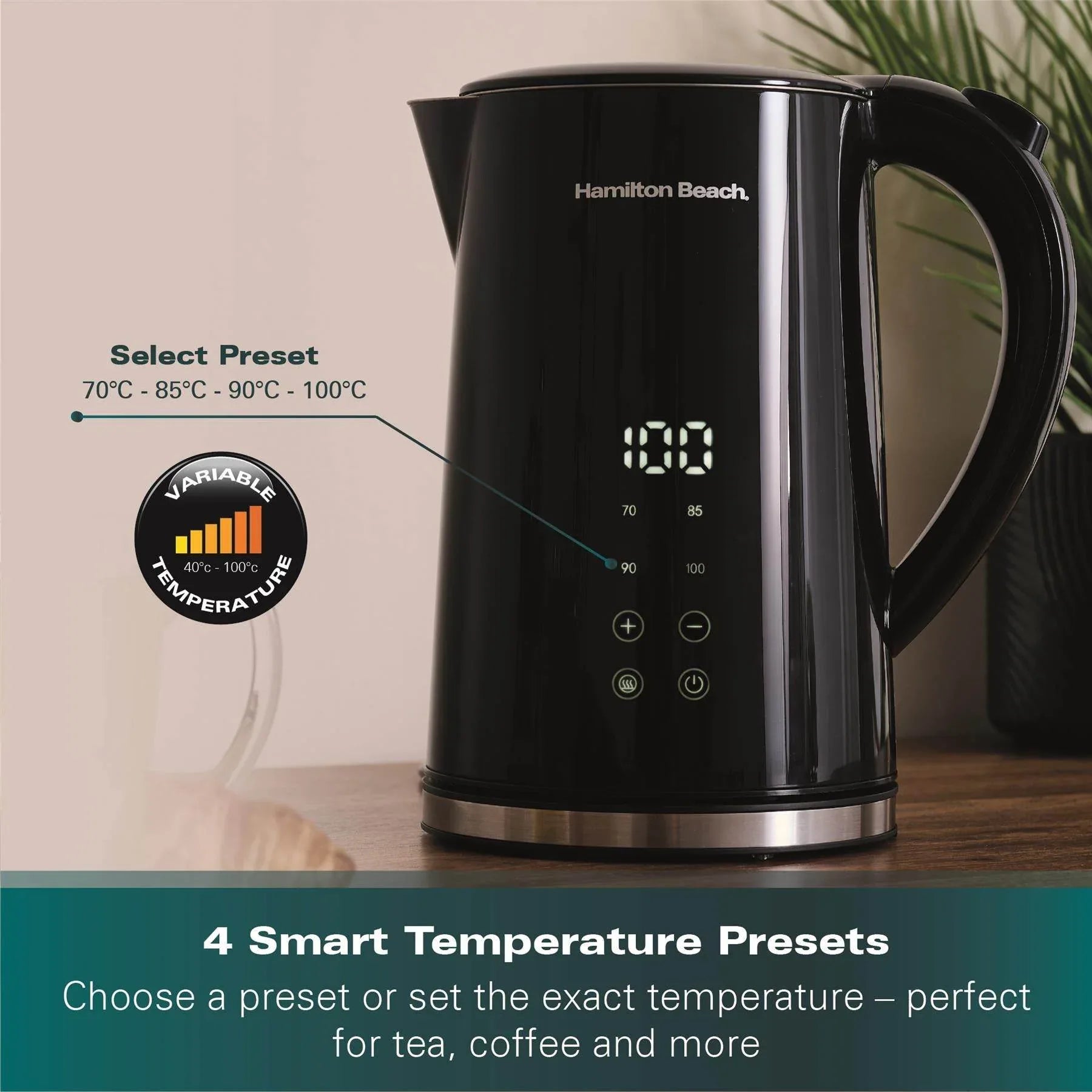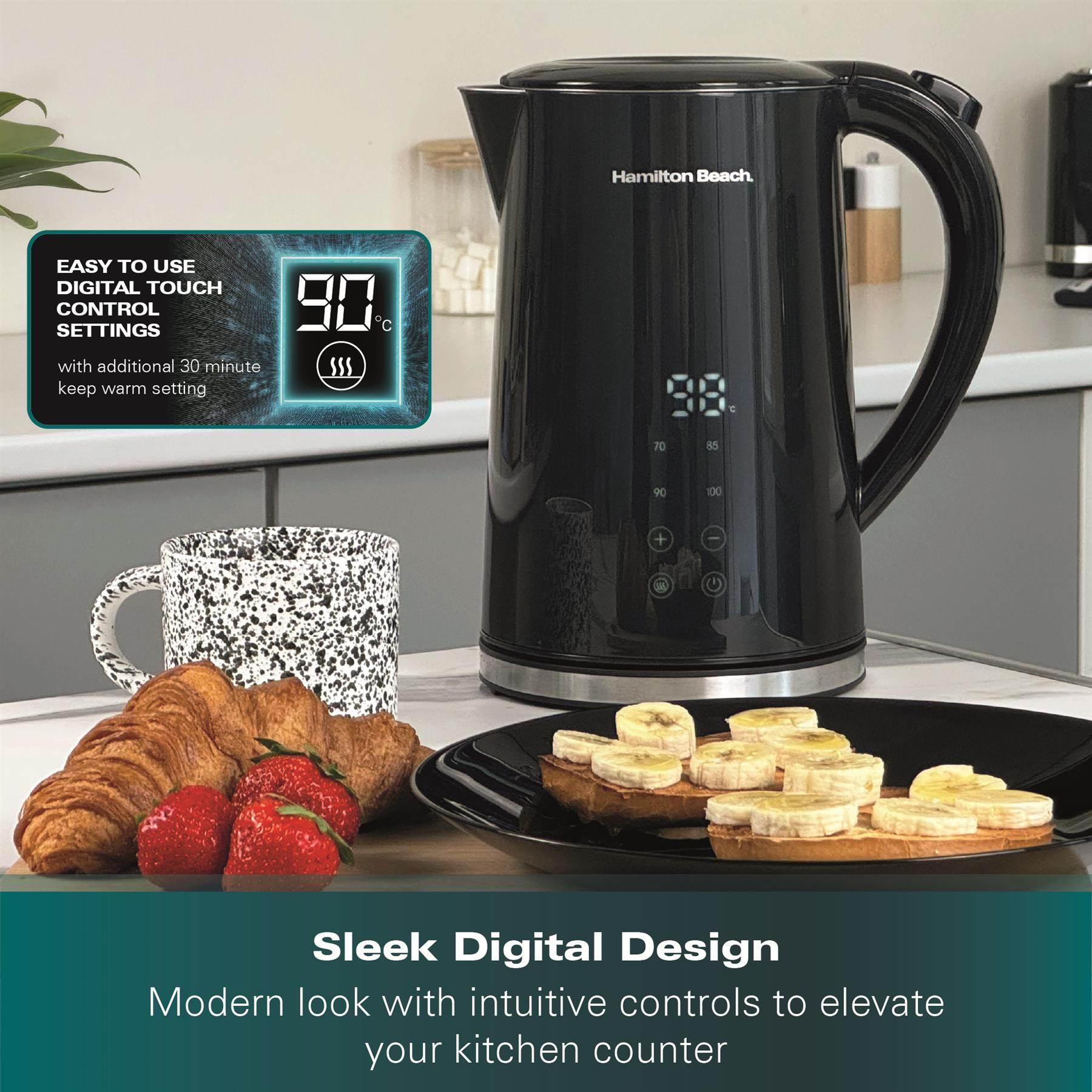 The Hamilton Beach HBK001B Flex Control 1.7L Kettle combines precise temperature control with fast boiling performance for a wide range of beverages.