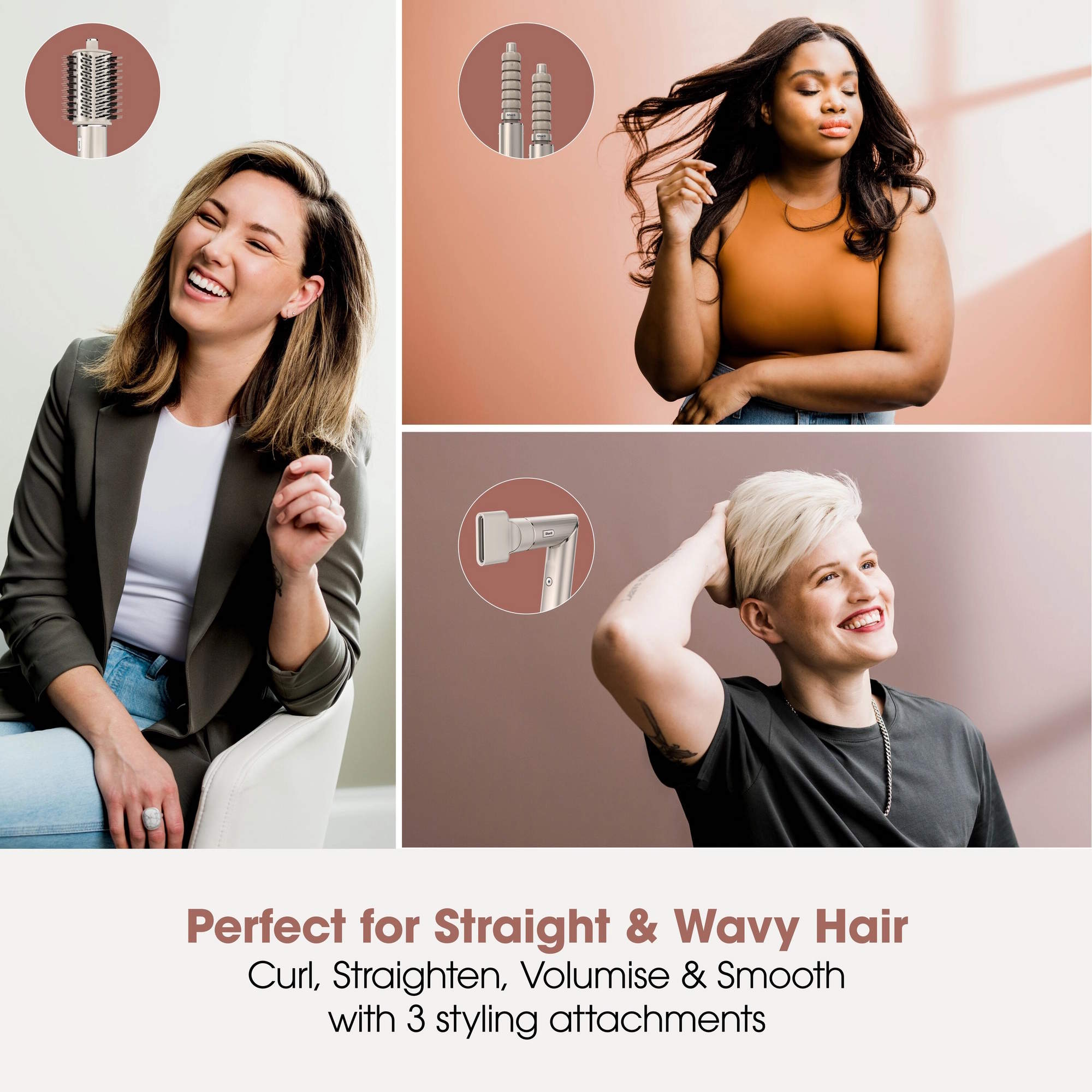 From soft curls to shiny finishes, this tool is built to curl, straighten, volumise, and smooth. It's tailored for straight and wavy hair types and gives you the flexibility to create your preferred style at home, without the need for multiple tools.