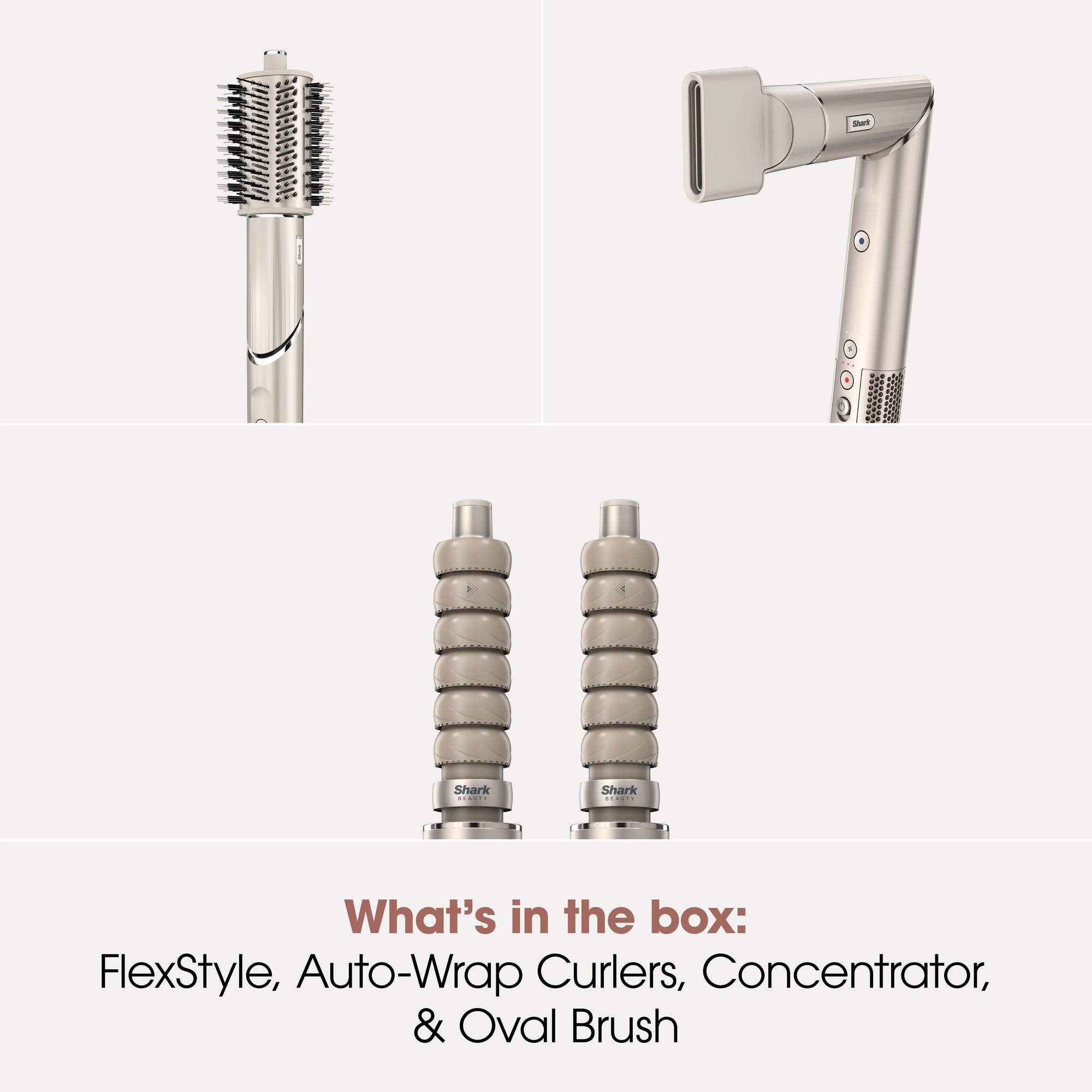 The set includes two Auto-Wrap Curlers, an Oval Brush, and a Styling Concentrator, all designed to deliver precision and ease. Each attachment clicks in quickly, giving you complete control whether you're creating a voluminous blow-dry or defined curls.