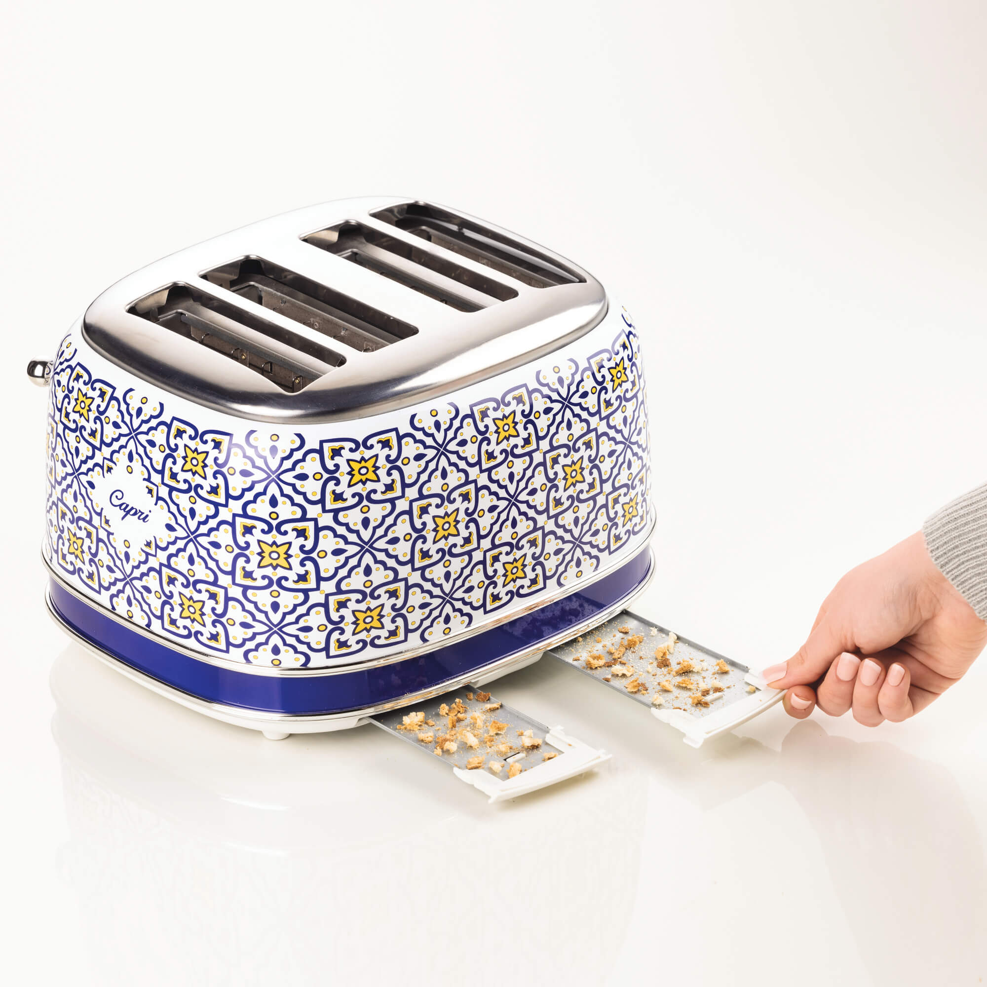 With a stylish metal body and vibrant aesthetic, the Capri toaster brings a refined, coastal charm to your countertop. It’s more than just visually appealing, it’s built for daily use with intuitive controls and durable materials.