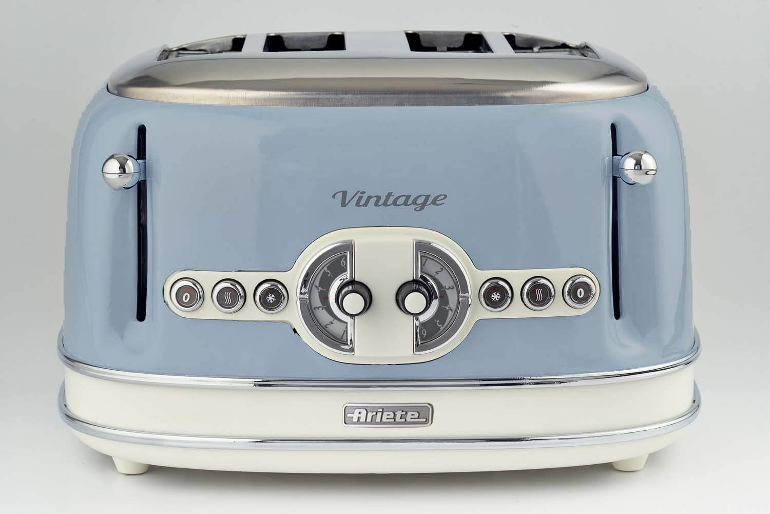 The Ariete AR5605 Vintage 4 Slice Blue Toaster combines vintage design with modern function, making it a perfect addition to any kitchen. With its unique blue colour and compact design, it looks stylish and striking on your kitchen counter top.