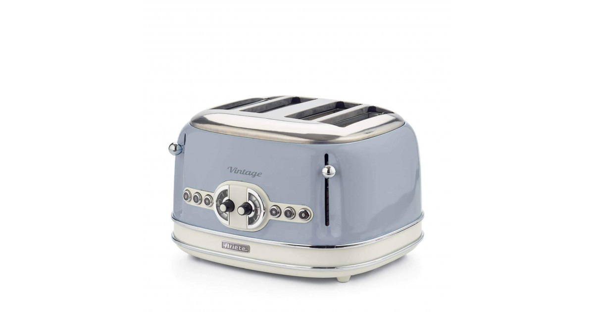 Finished in a soft celeste blue with a durable metal housing, the toaster brings a vintage aesthetic to your kitchen while offering practical features like cool-touch sidewalls, auto-eject and intuitive dial controls. The Ariete AR5605 is an ideal choice for those seeking a balance of style, convenience and reliable performance in a four-slice toaster.