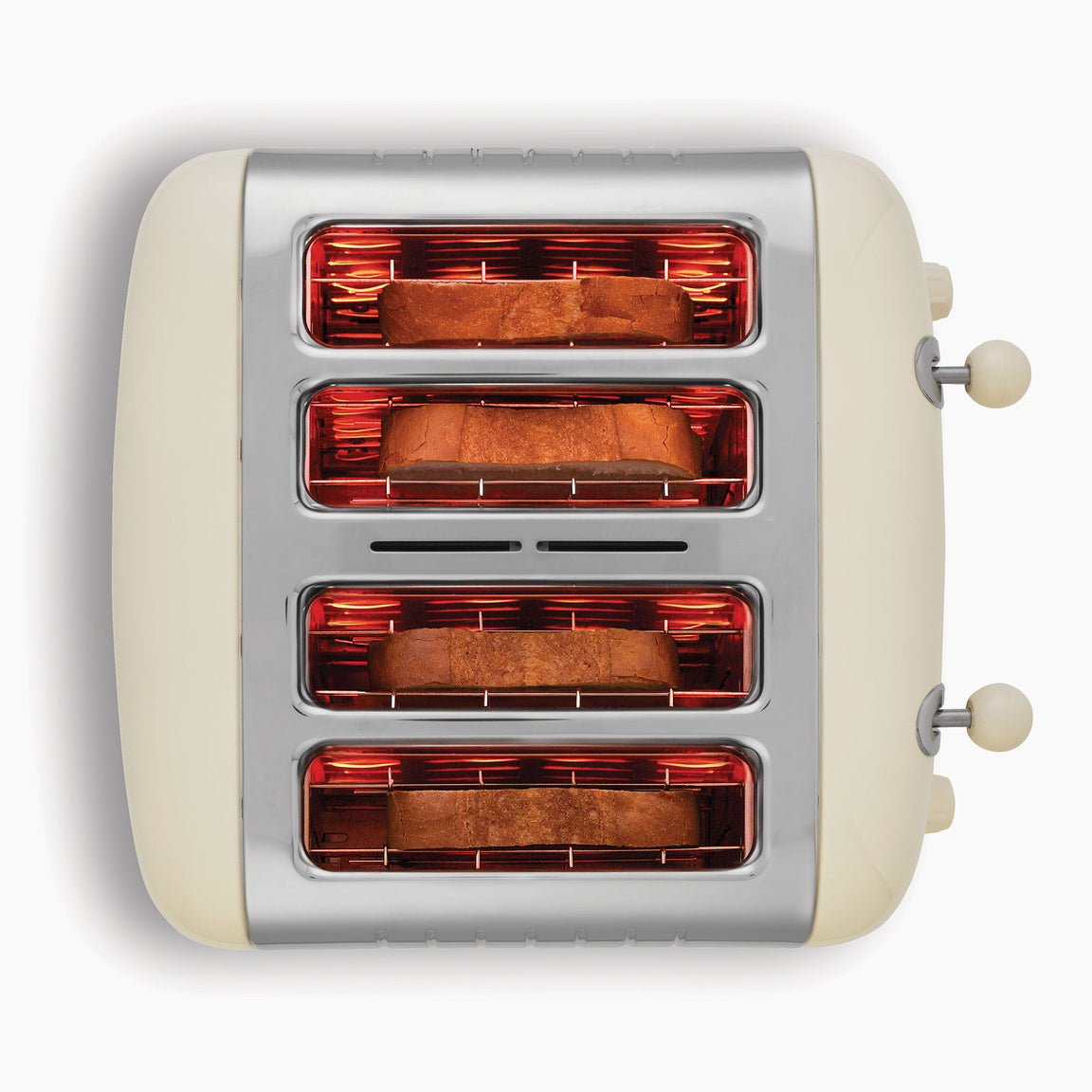 Finished in a high gloss cream exterior with a stainless steel cover, this model offers a polished, modern aesthetic. A concealed removable crumb tray supports easy maintenance, while the 2kW power output ensures rapid performance making it capable of handling up to 120 slices per hour for busy households. The Dualit 46202 4 slice cream lite toaster is a refined appliance that delivers both style and substance.