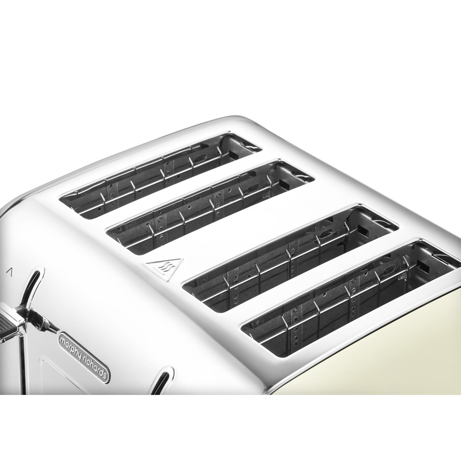 The Morphy Richards 240132 Venture Retro 4 Slice Toaster in cream offers a refined balance of classic styling and modern functionality. With its elegant retro design and polished cream finish, this toaster serves as both a practical appliance and a stylish addition to any kitchen. Ideal for busy households, it provides versatile toasting options with user-friendly features for everyday convenience.