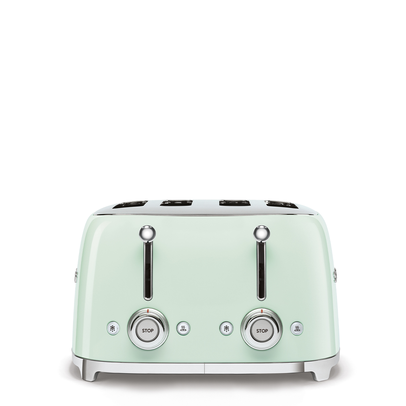 The Smeg TSF03PGUK Retro Long Slot 4 Slice Pastel Green Toaster combines iconic design with everyday practicality. With extra wide slots, independent controls and multiple functions, it delivers perfect toast for every taste while bringing a touch of retro charm to your kitchen.