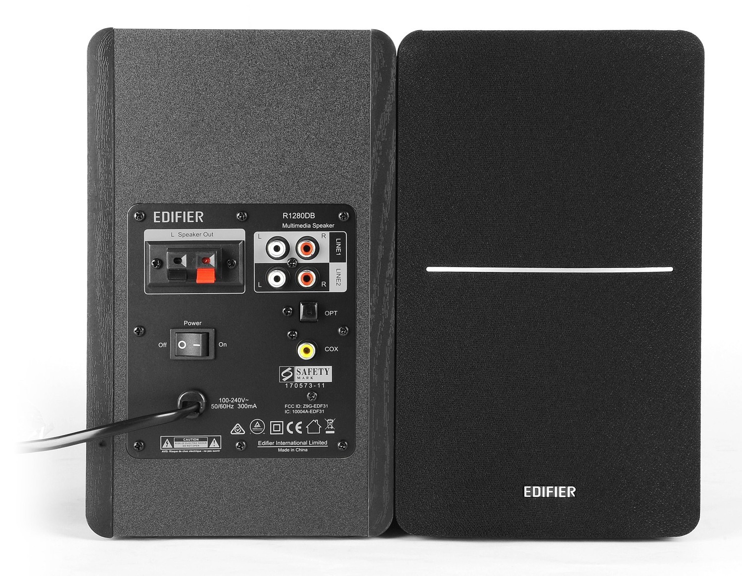Equipped with bass, treble, and master volume dials (located conveniently on the side panel), the R1280DB speakers offer easy access to sound adjustments. Additionally, the included wireless remote control allows you to manage the volume and mute functions from across the room, enhancing convenience without interruption.