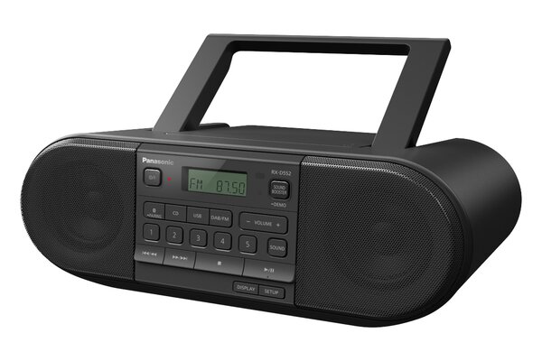 Panasonic's RX-D552E-K is a powerful and versatile portable DAB+ radio that combines modern technology with classic features. With a classic black design, it offers 20W of powerful bass performance, making it suitable for both indoor and outdoor use. This device allows you to enjoy a variety of audio sources, including DAB+ radio, CDs, Bluetooth® streaming, and USB playback, all easily controlled via remote and preset buttons.