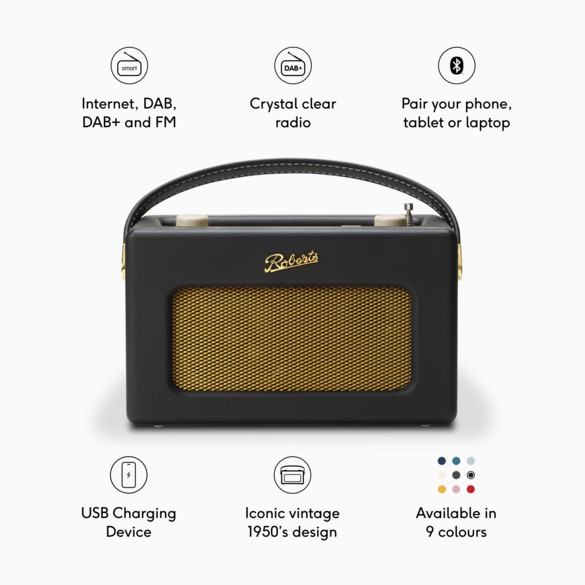 Roberts' ISTREAM3LBLK iStream 3L portable retro radio combines classic design with modern streaming capabilities. Available in black, this radio offers a rich audio experience with its acoustically tuned wooden casing and a wide range of connectivity options, making it perfect for music lovers who appreciate both vintage aesthetics and contemporary technology.