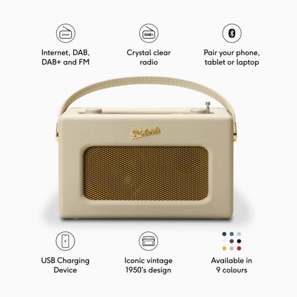 Roberts' ISTREAM3LPC iStream 3L portable retro radio combines classic design with modern streaming capabilities. Available in pastel cream, this radio offers a rich audio experience with its acoustically tuned wooden casing and a wide range of connectivity options, making it perfect for music lovers who appreciate both vintage aesthetics and contemporary technology.