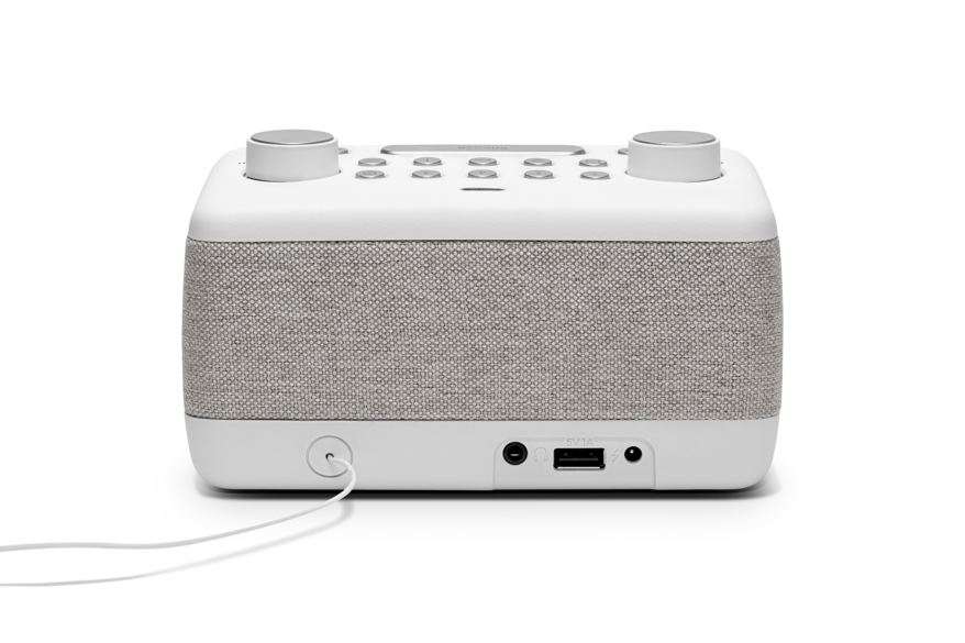 The Ortus 4 is designed with both space and style in mind. Its compact size, at just 158mm wide, makes it ideal for bedside tables or minimalist interiors. The tactile fabric wrapped body and curved corners add a touch of elegance, while the large, easy to read LCD display ensures you can see the time and settings clearly. The auto dimmer feature adjusts the display brightness according to the ambient light, providing a comfortable viewing experience day or night.