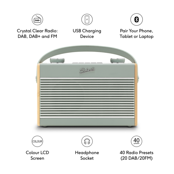 The Roberts RAMBLERCLADE Rambler Classic Retro Radio combines classic design with modern streaming capabilities. Available in duck egg blue, this radio offers a rich audio experience with its bamboo panels and wide range of connectivity options, meaning it is perfect for music lovers.