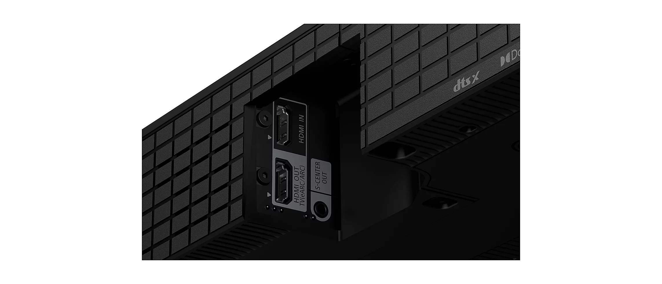With its subtle black design, the HTA8000CEK soundbar complements any living room. It is wall mountable, providing flexibility in placement and helping to save space. The soundbar's design not only looks great but also enhances the acoustic performance, ensuring you get the best sound quality possible.