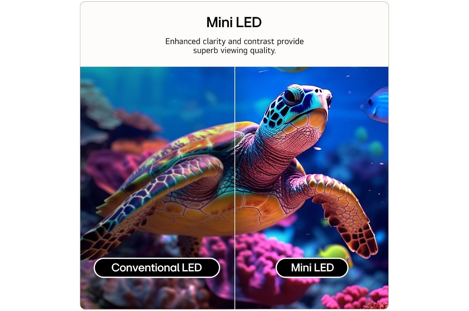 Experience rich, surround sound with the AI Sound Pro technology, which creates virtual 9.1.2 channel audio for an enveloping sound experience. Clear Voice Pro enhances audio clarity, ensuring dialogue and sound effects are delivered with precision, so no more struggling to hear quiet speech in films. LG's WOW Orchestra feature optimises audio when paired with compatible LG soundbars, letting you enjoy a level of sound quality you'll never have previously experienced.