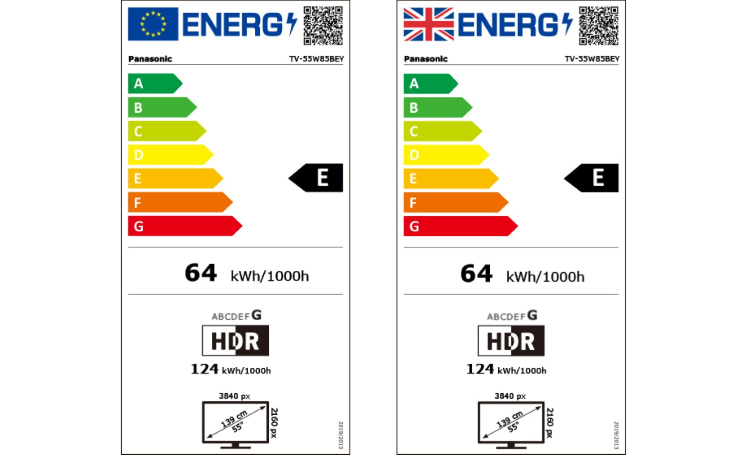 The timeless black design of Panasonic's TV-55W85BEY complements any living space. It features a multi window function, voice guidance, and an ambient sensor for optimal viewing in different lighting conditions. The TV is energy efficient, with an average power consumption of 64 kWh/1000h for SDR and 124 kWh/1000h for HDR content.
