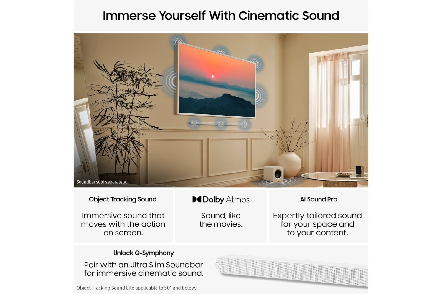 Equipped with advanced audio technology, Samsung have packed this TV with Adaptive Sound Pro and Object Tracking Sound Lite, delivering sound that adapts to your environment and content. Whether you're watching a movie or listening to music, the TV ensures an immersive audio experience that accompanies the stunning visuals perfectly.