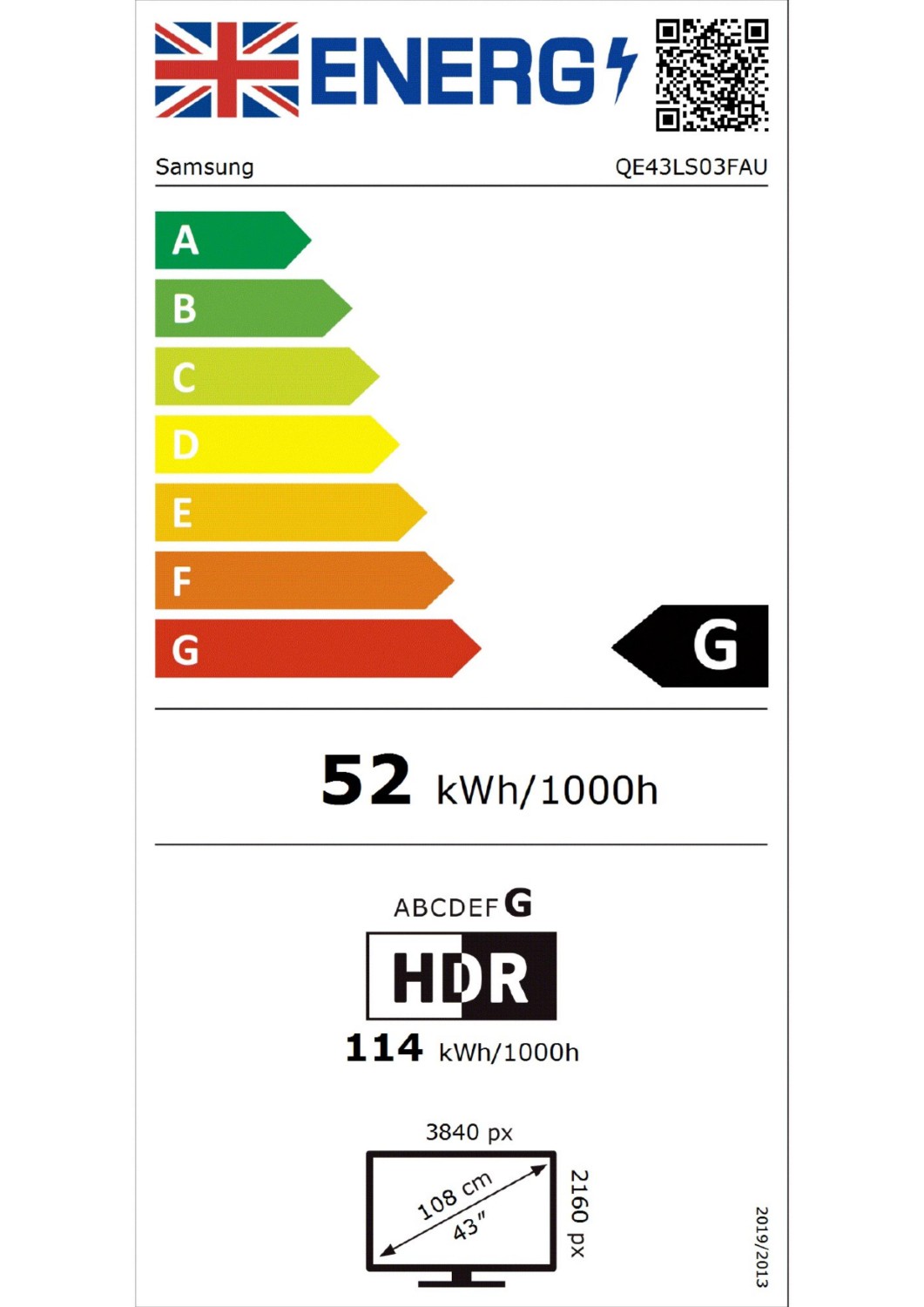 Designed with environmental responsibility in mind, Samsung's QE43LS03FAUXXU Frame TV is equipped with an Eco Sensor and power saving features that minimise electricity consumption. Their Solar Cell Remote is a particularly sustainable addition, reducing reliance on disposable batteries by harnessing ambient light for energy.