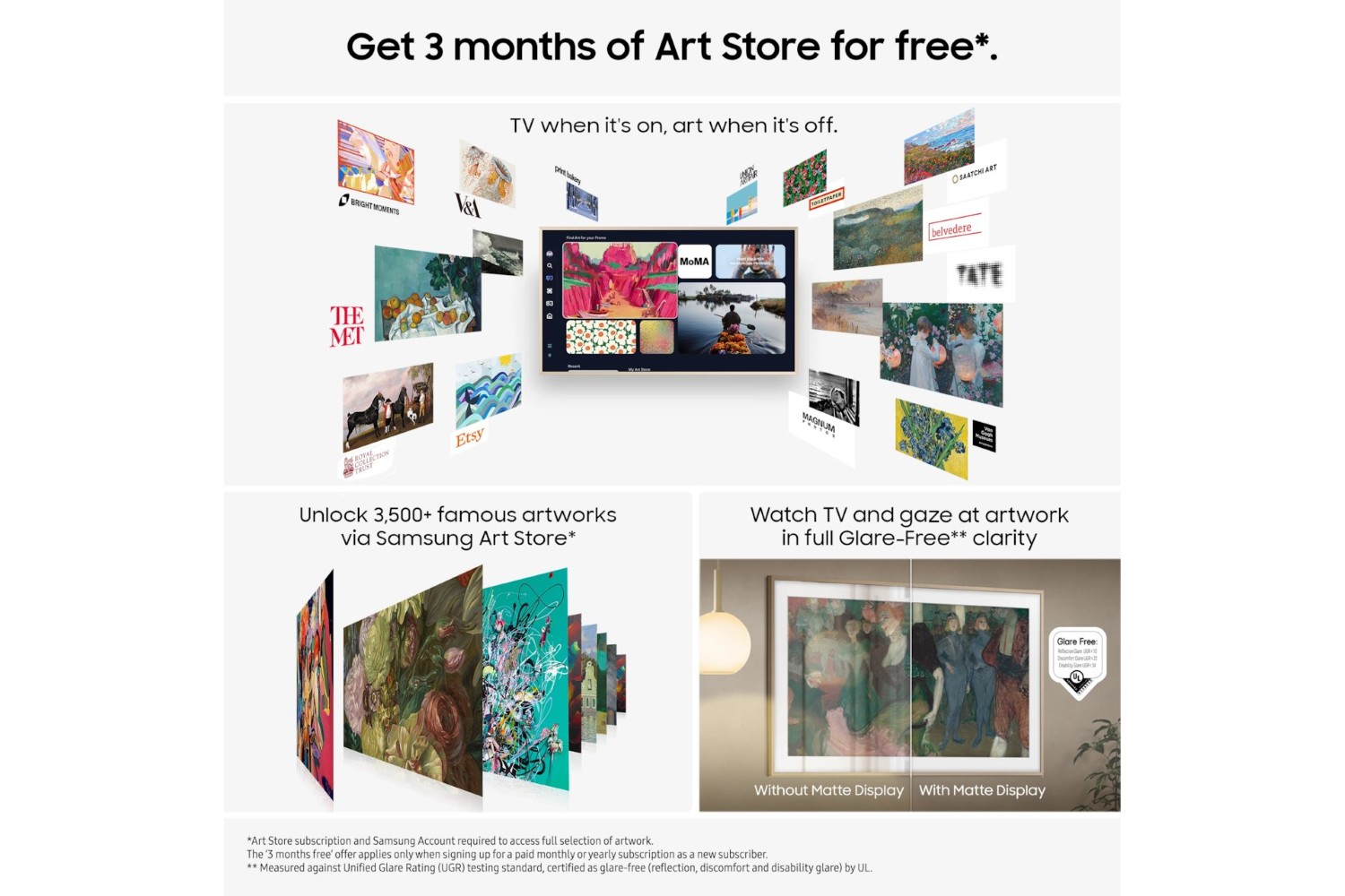 | TV Features: | 4K, Art Mode, Bluetooth, HDR, QLED, Samsung TV Plus Guide, Smart TV, The Frame, USB Playback, USB Record, Voice Assistant |