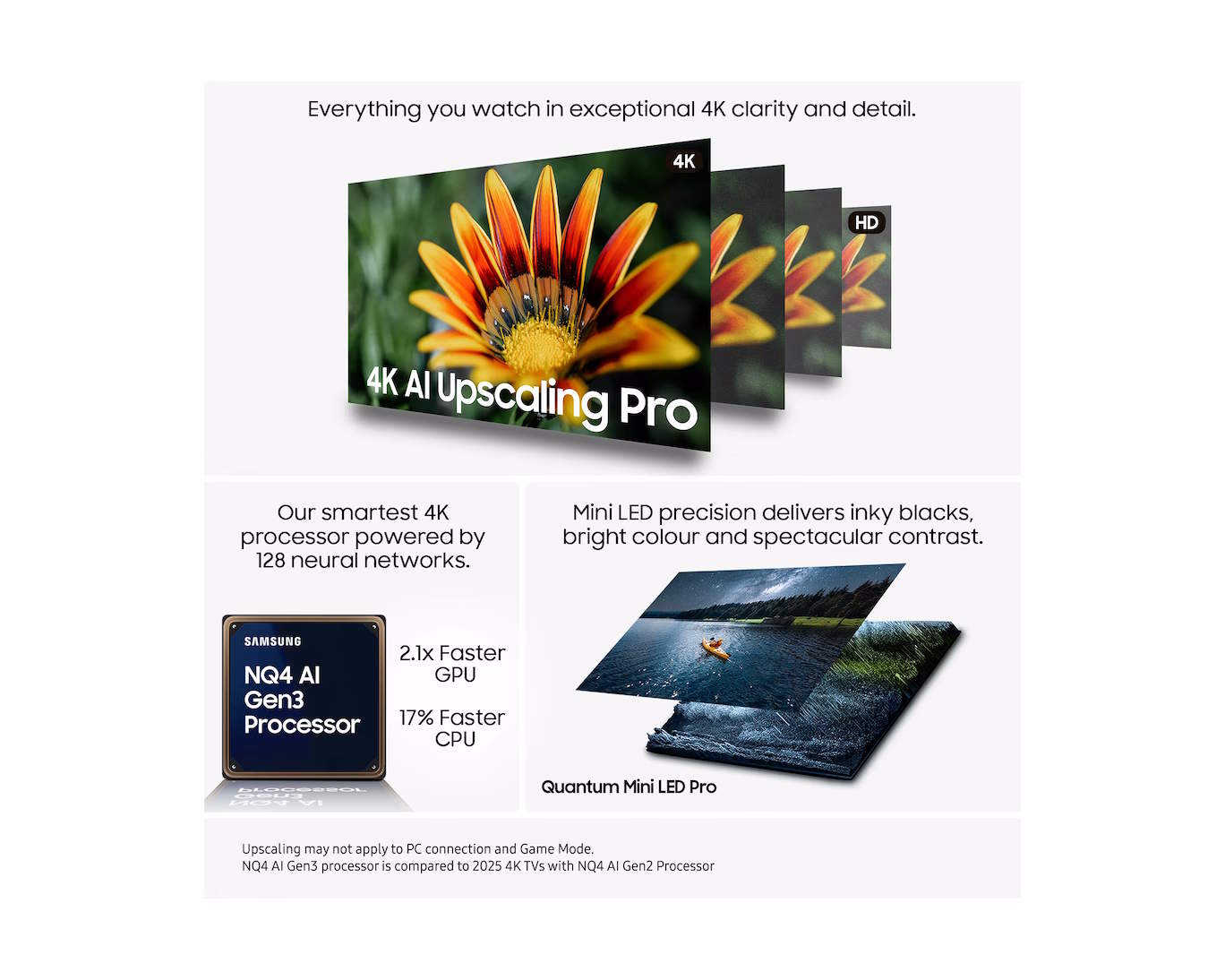 - Quantum Mini LEDs for bright, vibrant colour