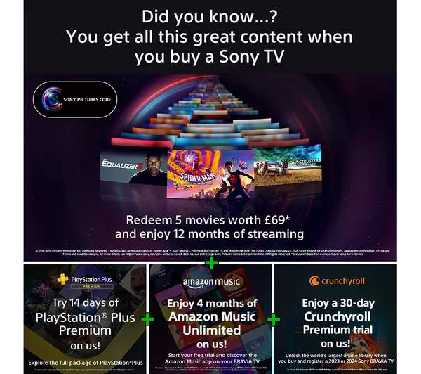 | TV Features: | 4K, Bluetooth, Bravia 7, Freeview HD, QLED, Smart TV, USB Playback, Voice Assistant |