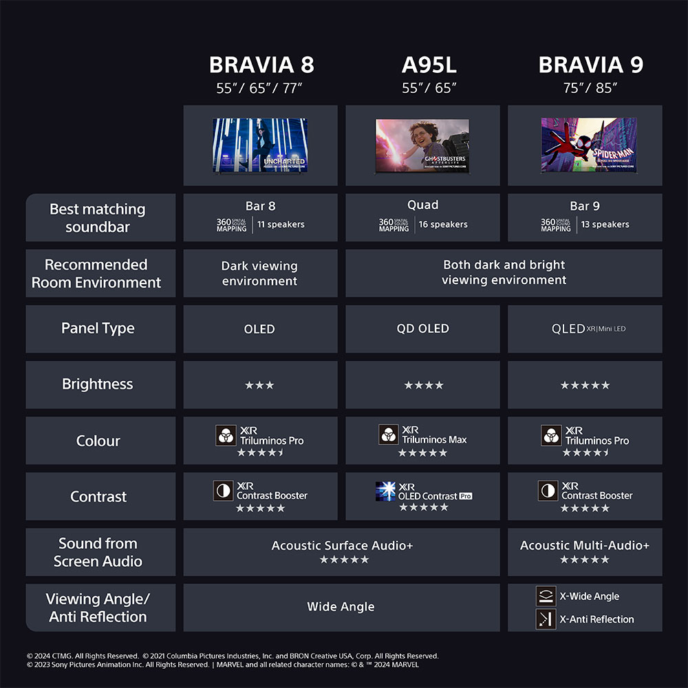 Experience cinematic visuals with the K65XR80U's bright OLED display, which features over 8 million self illuminating pixels for unparalleled detail and vibrant colours. The screen itself acts as the speaker, delivering sound that feels incredibly real and immersive, akin to a cinema experience.