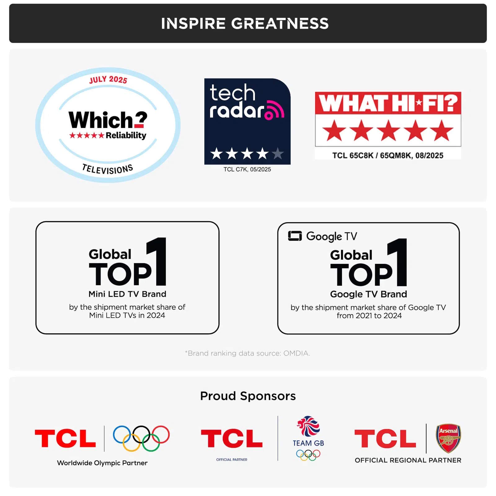 TCL's 65Q7C-UK 65" QD-Mini LED television is designed to transform your home entertainment experience with its advanced display technology and smart features. This television offers stunning visuals and intuitive smart capabilities, making it an ideal choice for families to film enthusiasts seeking top quality entertainment.