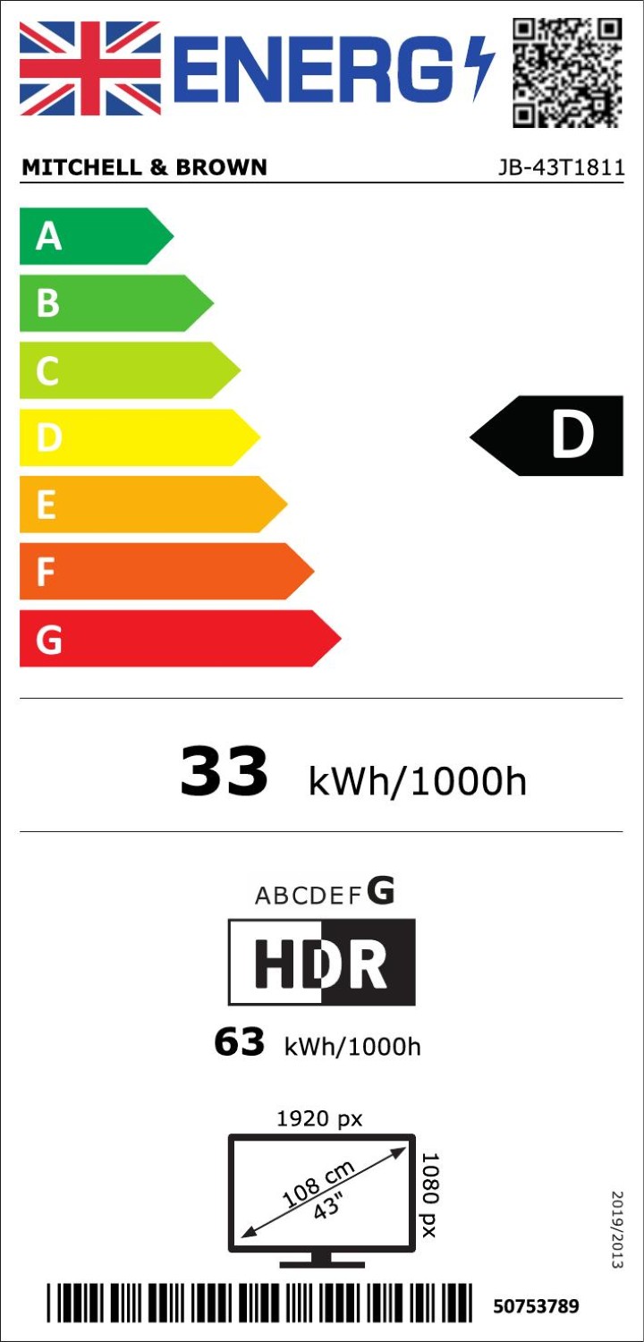 Mitchell & Brown have designed the JB-43T1811 with user convenience in mind, featuring a borderless design that fits seamlessly into any room. The inclusion of Hotel Mode makes it suitable for hospitality settings, while parental controls and sleep mode offer added peace of mind for families. The TV's energy efficiency class D rating, along with energy saving mode, ensure it operates economically.
