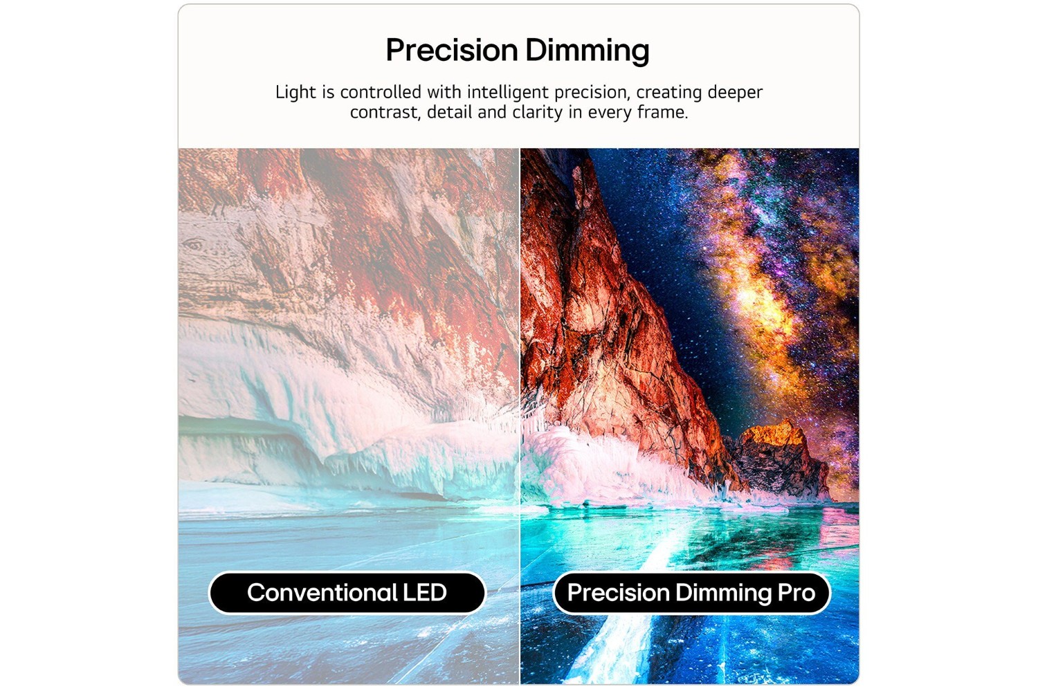 Experience rich, surround sound with the AI Sound Pro technology, which creates virtual 9.1.2 channel audio for an enveloping sound experience. Clear Voice Pro enhances audio clarity, ensuring dialogue and sound effects are delivered with precision, so no more struggling to hear quiet speech in films. LG's WOW Orchestra feature optimises audio when paired with compatible LG soundbars, letting you enjoy a level of sound quality you'll never have previously experienced.