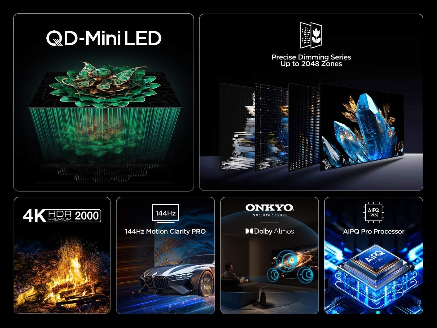- QD-Mini LED astonishingly vivid visuals with lifelike colours